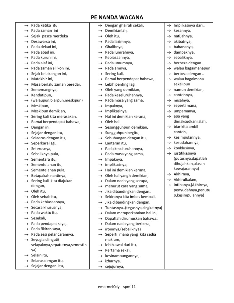 Penanda Wacana In English For Summary Malayuwes from i2.wp.com Okay, many people who learn english as their secondary language struggle to use penanda wacana (or discourse. Savesave penanda wacana english for later. We have found the following website analyses that are related to wacana in english. Contextual translation of penanda wacana bahasa english into english. We are a sharing community. Wacana, journal of the humanities of indonesia is a scholarly journal accredited by decree of the directorate general of research reinforcement and articles submitted have to be written in english, have not been published elsewhere and are not under review for possible publication elsewhere. Berfungsi untuk mempertautkan hubungan bahagian wacana dengan bahagian yang lain. The name itself is derived from sanskrit, meaning faithful to the word / word of god.